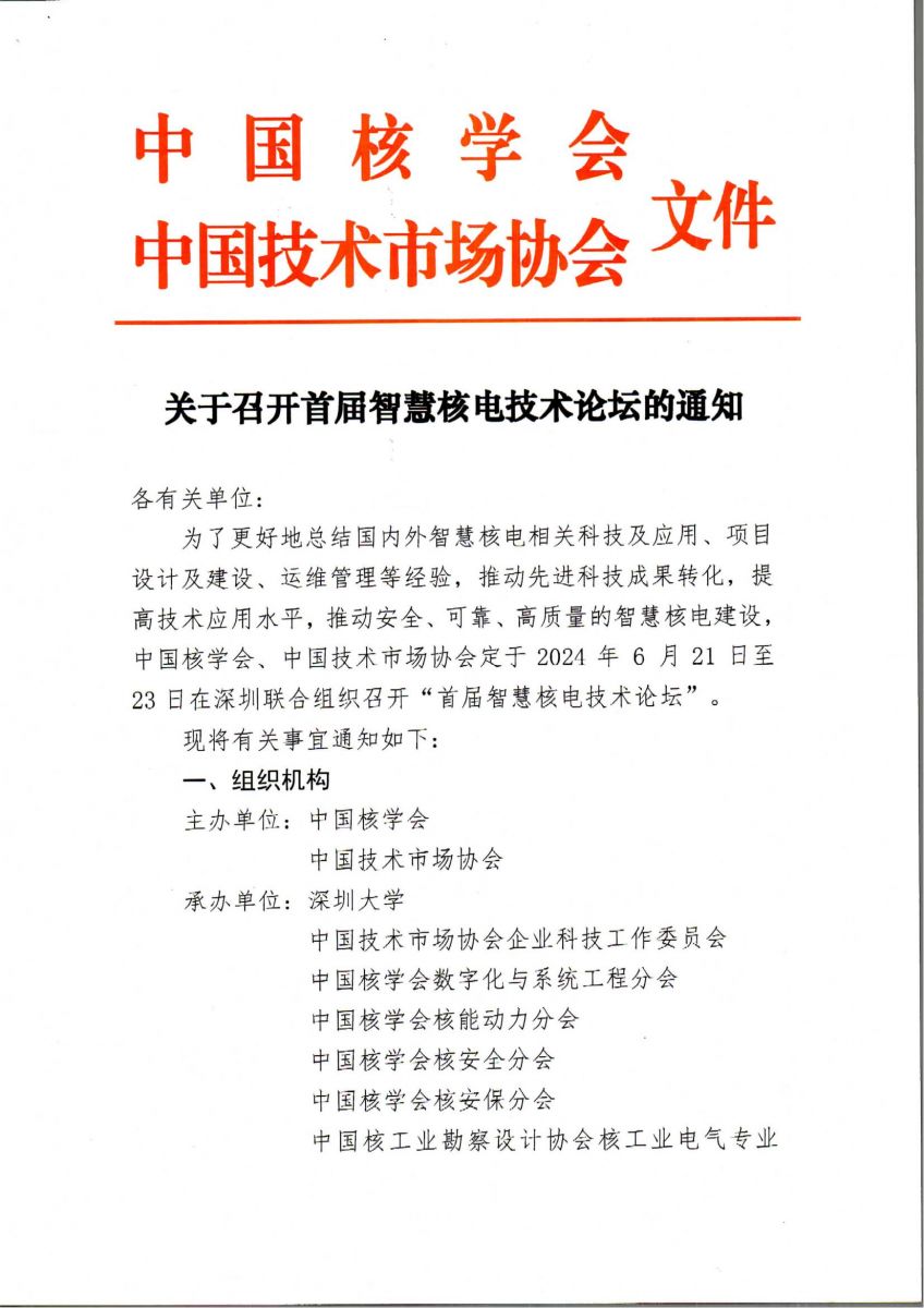 我公司將于6月21日至6月23日參加由中國(guó)核學(xué)會(huì)、中國(guó)技術(shù)市場(chǎng)協(xié)會(huì)在深圳聯(lián)合組織召開“首屆智慧核電技術(shù)論壇”。